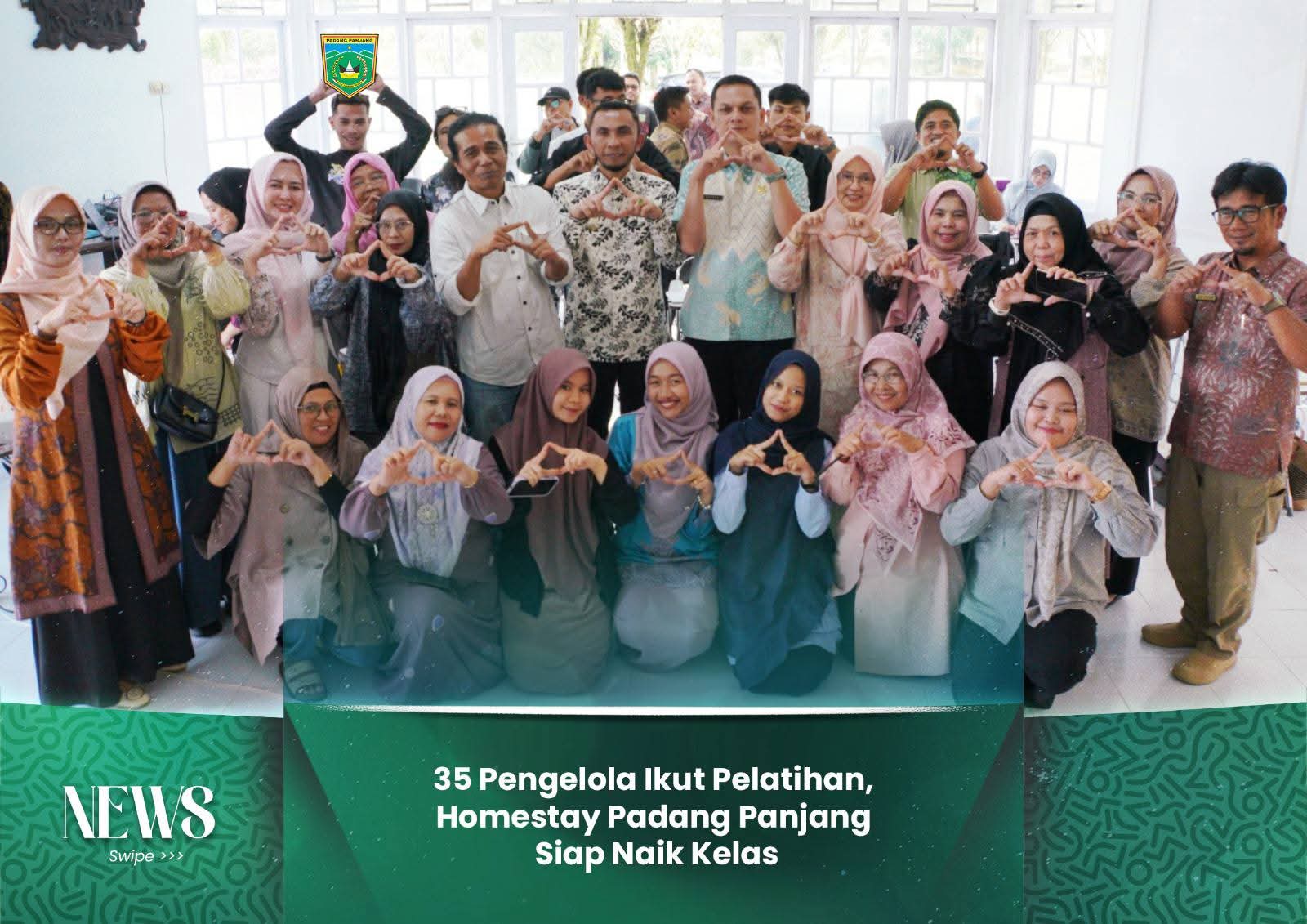 PADANG PANJANG, Targetonlinenews.com — Upaya mendorong sektor pariwisata berbasis masyarakat kian diperkuat Pemerintah Kota Padang Panjang. Sebanyak 35 pengelola homestay dan wisma mengikuti pelatihan peningkatan kapasitas bertajuk “Homestay Naik Kelas 2026”, Kamis (2/4/2026), sebagai langkah konkret meningkatkan kualitas layanan sekaligus daya saing destinasi.