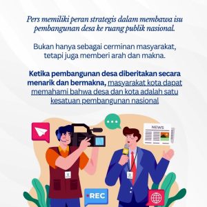 Pers dinilai berperan sebagai jembatan komunikasi antara desa dan kota, sekaligus memberi ruang bagi suara warga desa untuk tampil di panggung nasional. Dengan pemberitaan yang utuh dan berimbang, media turut memperkuat transparansi, partisipasi publik, dan akuntabilitas pembangunan.