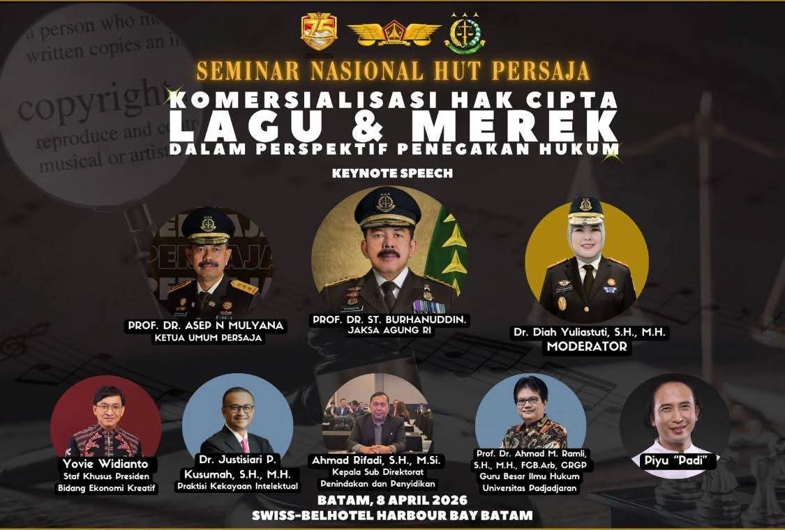 Batam, Targetonlinenews.com – Kepala Kejaksaan Negeri (Kajari) Sawahlunto, Eddy Samrah Limbong, S.H., M.H., turut serta dalam Seminar Nasional Hari Ulang Tahun (HUT) Persatuan Jaksa Indonesia (PERSAJA) yang diselenggarakan di Swiss Belhotel Harbour Bay Batam pada Rabu, (8/4/26) . Acara bergengsi ini mengangkat tema krusial mengenai “Komersialisasi Hak Cipta Lagu & Merek dalam Perspektif Penegakan Hukum”.Seminar nasional ini merupakan bagian dari upaya Penguatan Kapasitas Aparat Penegak Hukum dalam Penanganan Perkara Terhadap Hak Kekayaan Intelektual (HKI).