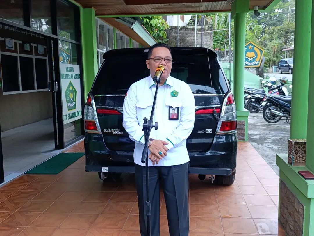 Sawahlunto, Targetonlinenews.com — Kepala Kantor Kementerian Agama (Kakankemenag) Kota Sawahlunto, Dr. H. Dedi Wandra, M.A., memimpin apel pagi pada Senin (20/4) dengan menyampaikan sejumlah arahan strategis terkait penguatan kinerja aparatur sipil negara (ASN) serta kesiapan menghadapi Hari Raya Idul Adha 1447 H.