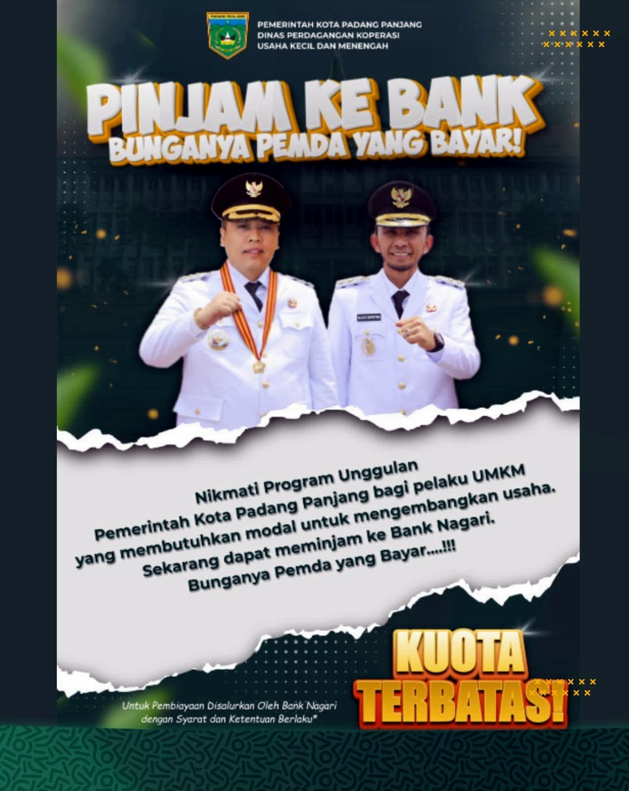 Pemkot Padang Panjang mengimbau masyarakat dan pelaku UMKM yang berminat agar segera menghubungi Bank Nagari Padang Panjang, karena kuota program terbatas dan penyaluran pembiayaan tetap mengacu pada syarat serta ketentuan yang berlaku.