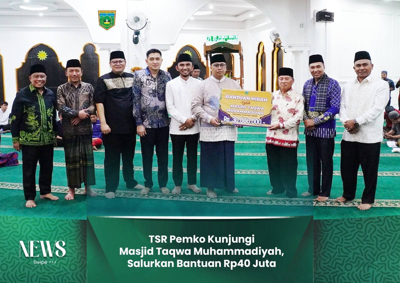 Pada kesempatan itu, Pemerintah Kota Padang Panjang menyalurkan bantuan sebesar Rp30 juta untuk mendukung operasional dan pembangunan Masjid Taqwa Muhammadiyah. Selain itu, Badan Amil Zakat Nasional (Baznas) Kota Padang Panjang turut memberikan bantuan Rp5 juta, serta Bank Nagari sebesar Rp5 juta, sehingga total bantuan yang disalurkan mencapai Rp40 juta.