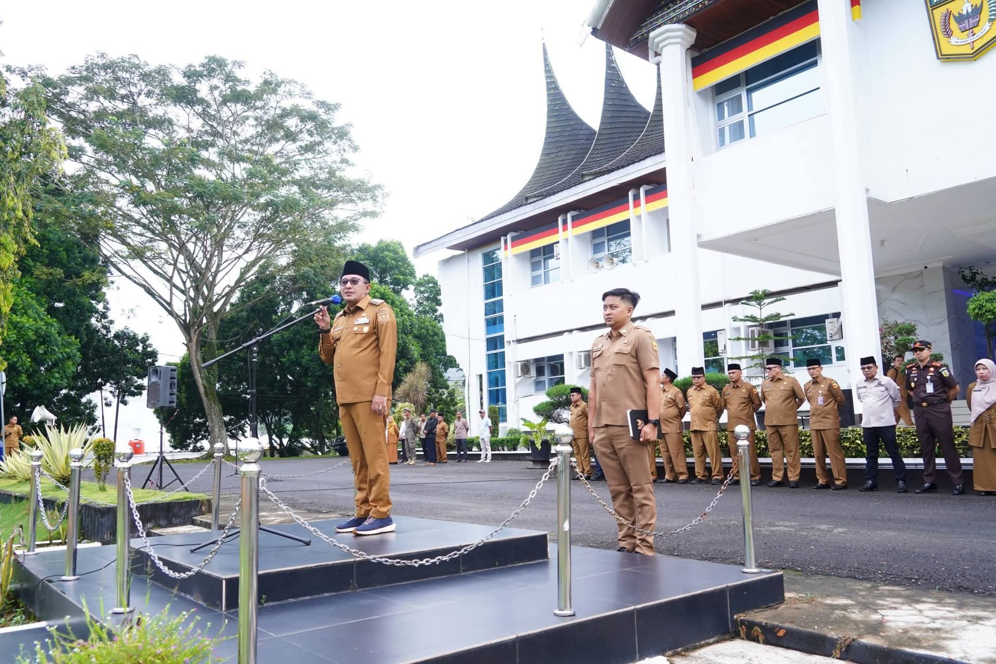 Apel perdana pasca Lebaran di Tanah Datar jadi sorotan—Bupati Eka Putra kirim pesan keras soal disiplin ASN di tengah tuntutan pelayanan publik yang tetap prima.